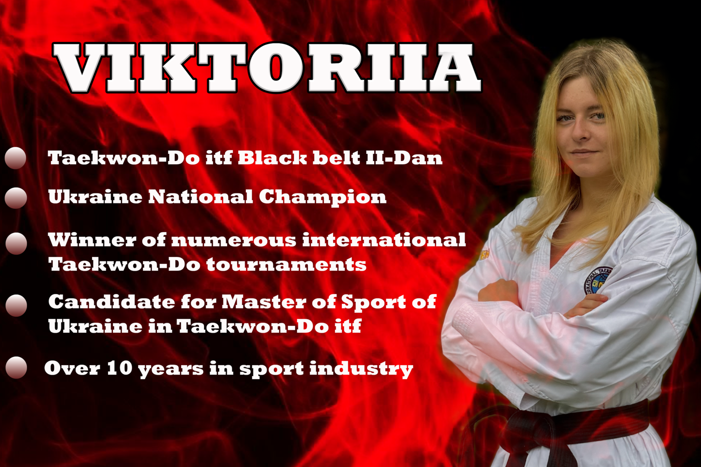 Oliinyk Viktoriia - Black belt II-dan in Taekwon-Do, Head Coach of the club, Former member of the Ukrainian national Taekwon-Do team, Multiple champion of Ukraine, Winner of numerous international Taekwon-Do tournaments.